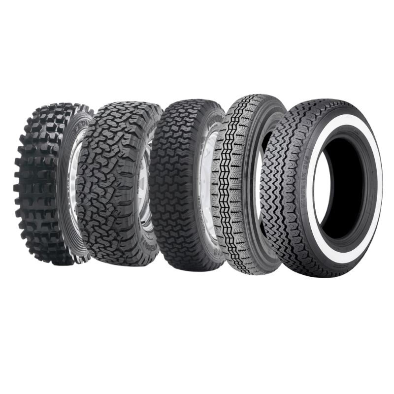 Conheça toda a nossa oferta em pneus para automóveis clássicos, competição ou off-road com uma vasta gama em diversos pisos e usos.