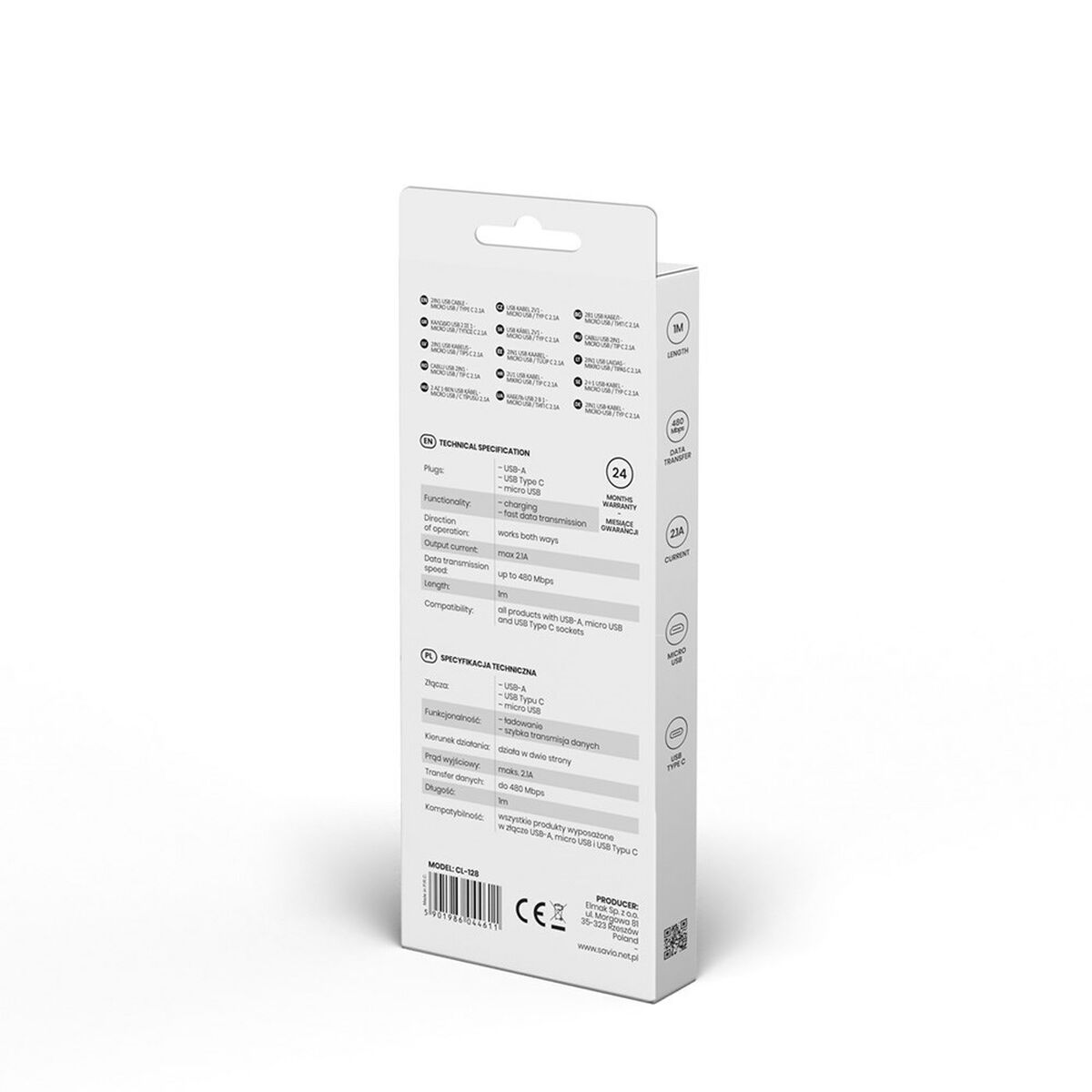 Cabo USB para Micro USB e USB C Savio CL-128 Preto 1 m