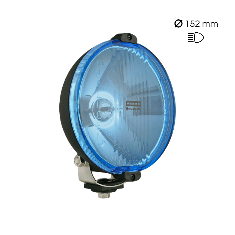 Farol de longo alcance Wesem HO3, versão com 152 mm de diâmetro, vidro azul e com encaixes incluídos.