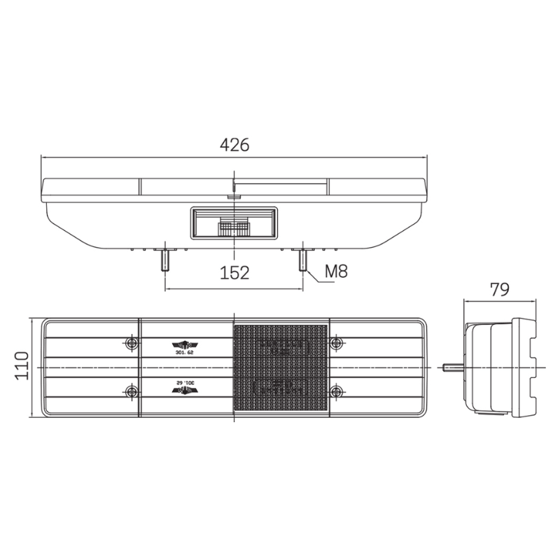 5 funções (Presença, stop, pisca, marcha atrás ou nevoeiro e refletor).