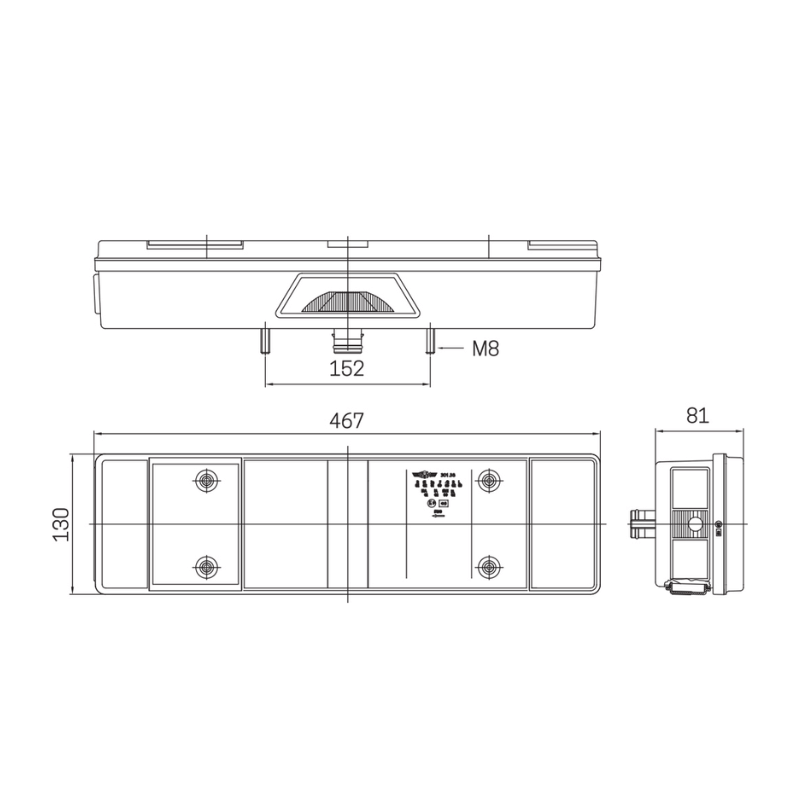 7 funções (2x presença, stop, pisca, refletor, marcha atrás e nevoeiro).