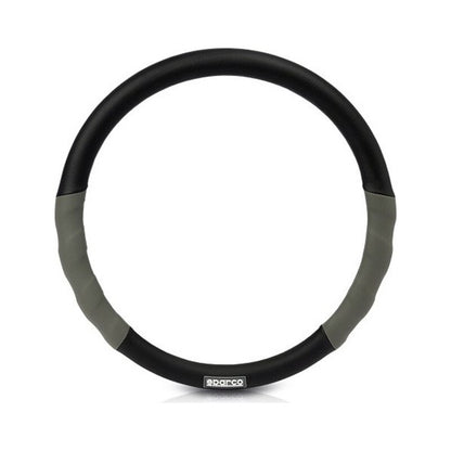 Capa para volante Sparco SPC1101L, com laterais de cor cinzenta, adaptável para volantes de 38 a 39 cm de diámetro.