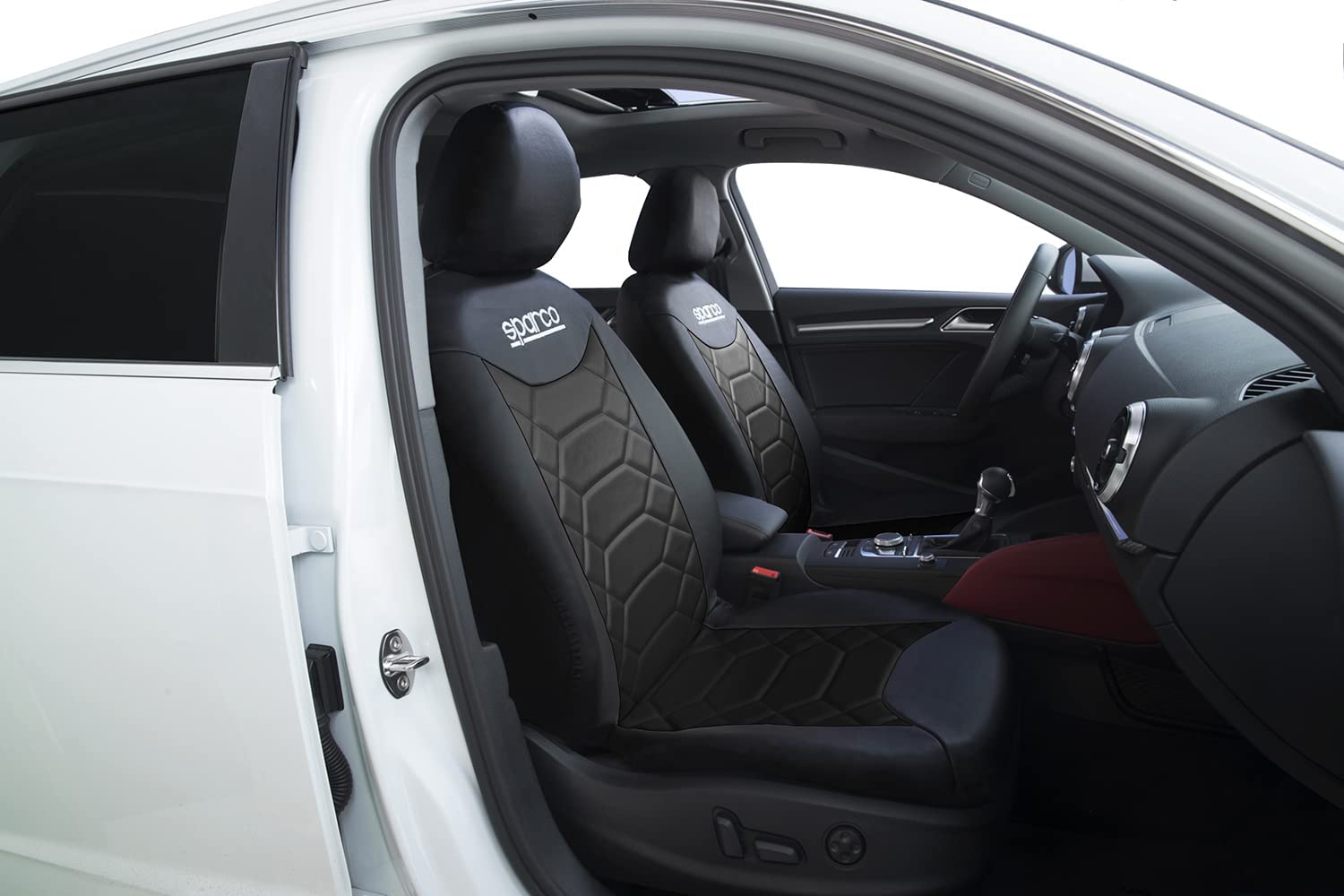 Conjunto de capas para bancos de automóvel Sparco SPC1016, compatível com a grande maioria dos automóveis.