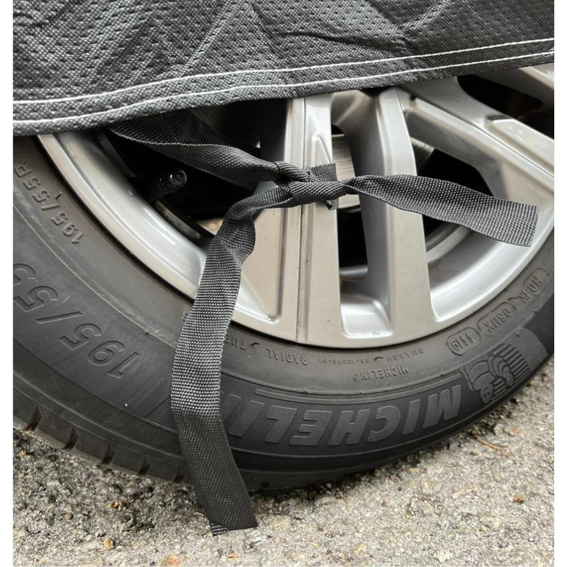Fabriqué entièrement en coton avec des pores respirants pour éviter la condensation et l'humidité pendant que la voiture est couverte.