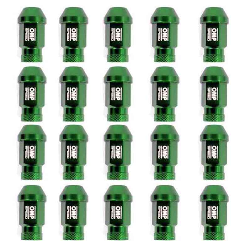 Set Porcas OMP 7075 40 mm M12 x 1,25 20 uds Verde