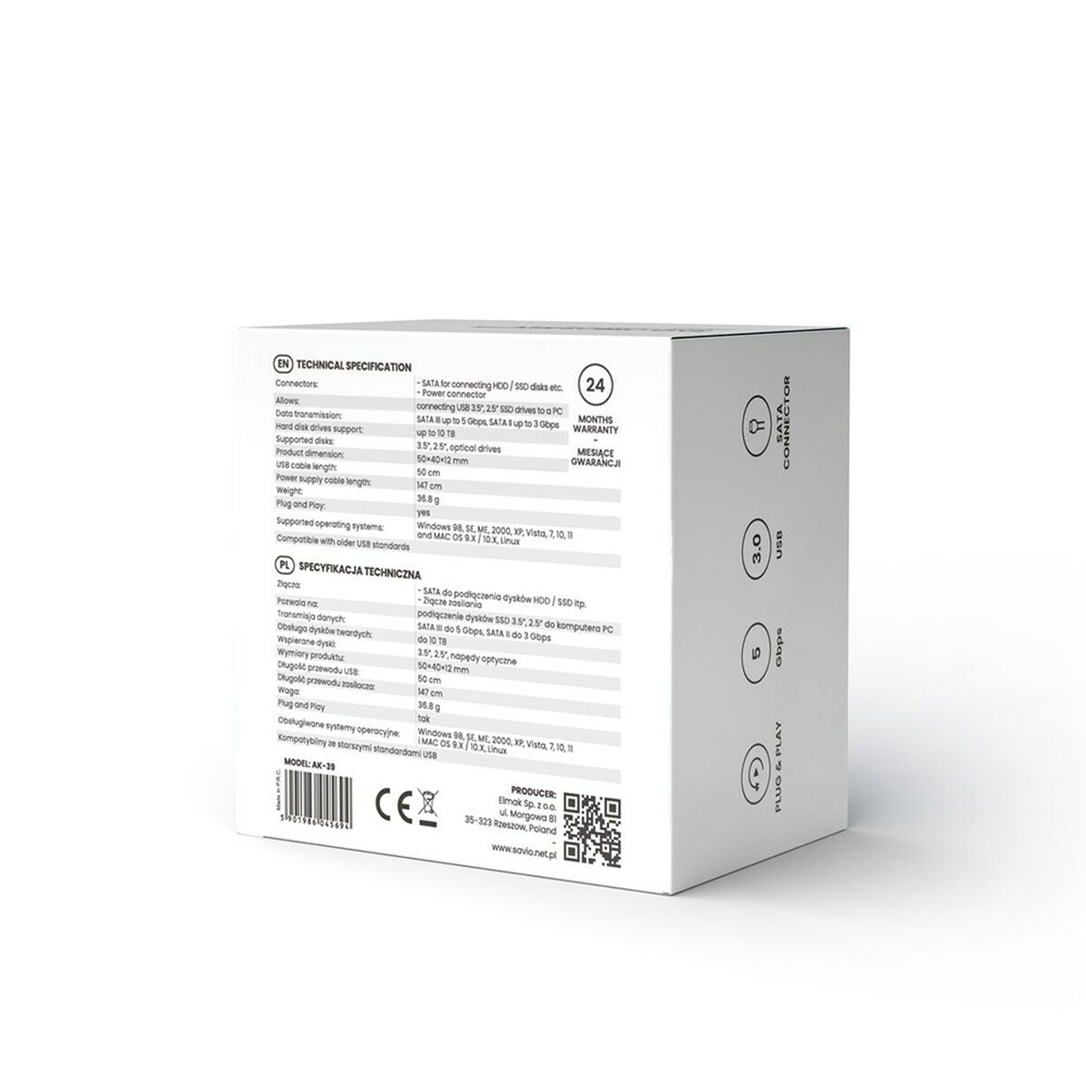 Cabo USB SATA III Savio AK-39 Preto 50 cm