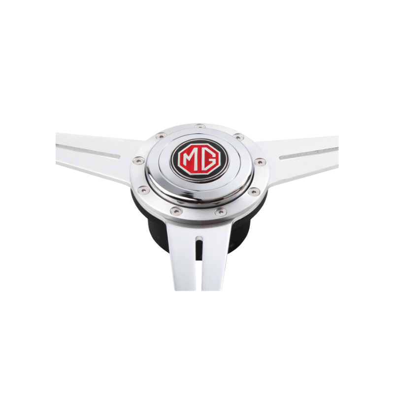 Centro de volante em alumínio para vários modelos MG. Inclui conector para buzina.