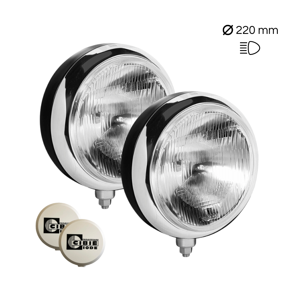 Pack de faróis de longo alcance, tipo Super Oscar (Ø 220mm) + capas Cibié