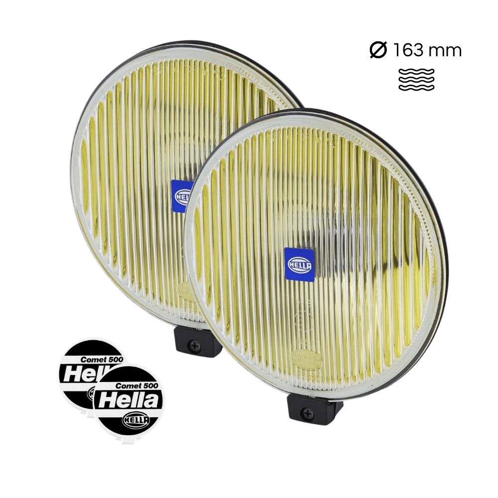 Pack de faróis de nevoeiro Hella Comet 500, versão amarela (Ø 163mm)