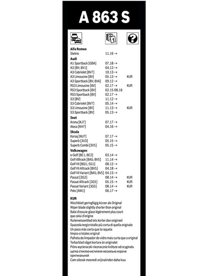 Escovas Limpa Pára-Brisas Bosch Aerotwin A863S
